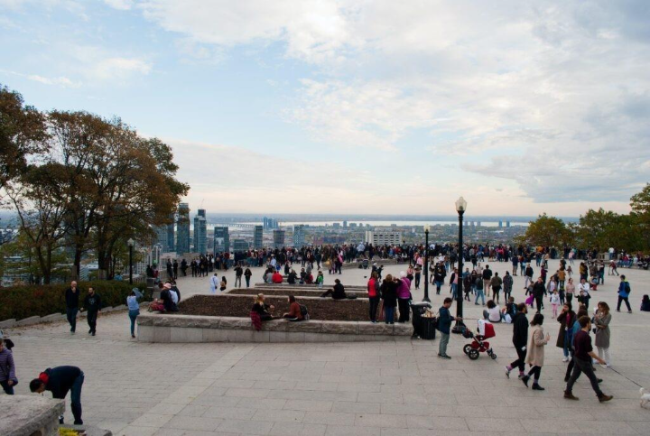 Kickstart your second day in Montreal with a calorie-burning ascent of Mont Royal, fondly referred to as “the mountain” by locals. This 761-foot-tall natural landmark not only offers panoramic city views but also lends its name to the city itself. Mont Royal Park is a vast green oasis that welcomes cyclists, joggers, and nature enthusiasts. While the park is vast, if you have limited time, prioritize reaching Belvedere Kondiaronk, one of Montreal’s premier viewpoints.